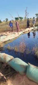 Face à la gravité de la situation, les habitants de la zone ont trouvé des solutions de fortune pour limiter les dégâts : des sacs remplis de sable pour contenir le flux de brut. Une solution temporaire qui ne peut résister à l’écoulement sans interruption du brut.
